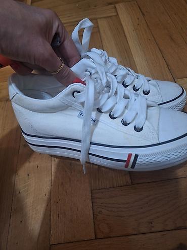 - Model: niske patike od platna sa zadebljanim đonom (platforma)