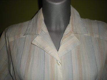bluza u osnovi krem bele boje, sa pastelno plavim i bež uzdužnim linijama.