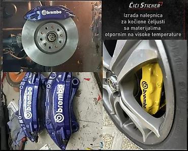 nalepnice za automobile - nalepnice za celjusti za kocnice samolepljive nalepnice izrađene od specijalne folije koja trpi do 120c. Otporne na uv zrake i ostale spoljne uticaje. Cena je prikazana za jedan par sa fotografijeukoliko vam ne odgovara nijedan proizvod iz nase ponude, obratite se nama-- izdizajniracemo nalepnicu po vasoj meri i ukusu --- vaš čiči sticker ----vrhunski kvalitet izrade sa nemackim materijalima - oracal -izrada stikera po želji -pogledajte sve naše oglase!! -preuzimanje: slanje brzom poštom - lično preuzimanje -kontakt: tel: mail: cicisticker@gmail. Com čiči sticker