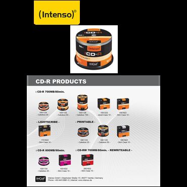 NovoCD-R 700MB (80 min.) pak. 10 komada Slim Case. Intenso CD-R 700MB/80min 52x10kom Slim Case (cena po pakovanju). Kapacitet skladištenja 700MB, 80 minuta snimanja, Pakovanje 10 diskova, Slim Case ambalaža, Brzina pisanja 52x.