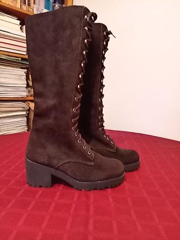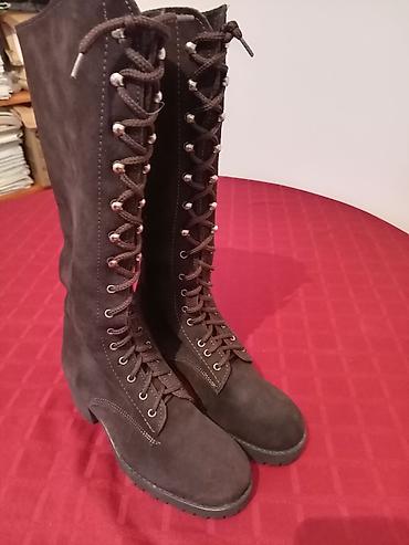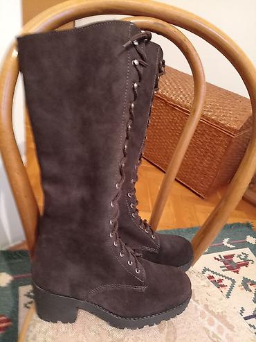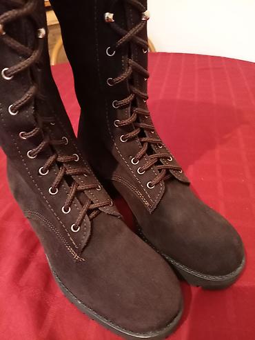 SUPER POVOLJNO! NOVE italijanske čizme od antilopa na pertlanje br 37, postavljene, tople i imaju gumeni đon. Pogodne su i za osobe sa jačim listovima.