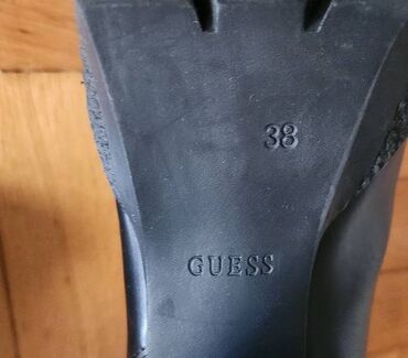 GuessČizme na štiklu, 38 broj, crne boje, na navlačenje, par puta nošene, imaju napred malu ogrebotinu ali kad se namaže kremom ne vidi se niti je primetna inače.