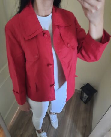 Ženska jakna BONNSEN, braon boje. - Veličina: XL (označeno na etiketi) - Materijal: spolja 100% PVC, postava 100% poliester - Mere iz slike: dužina 57 cm, poluobim 44 cm - Dizajn: klasična kragna,...