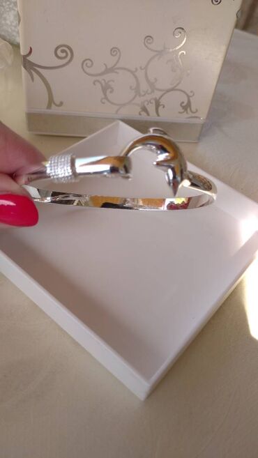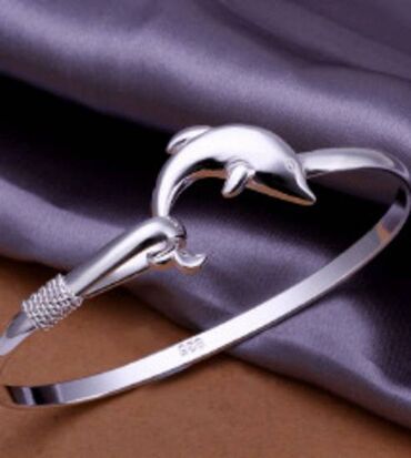 Srebrnasta narukvica sa motivom delfina - Materijal: metal u srebrnastom tonu, glatka, sjajna površina - Dizajn: stilizovani delfin koji obuhvata ručni zglob; glava i rep se spajaju napred - Mehan...1 000 RSD