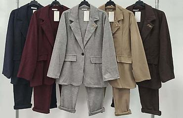 - Veličine: standardni ženski kroj; sako blago strukiran, pantalone ravne nogavice.