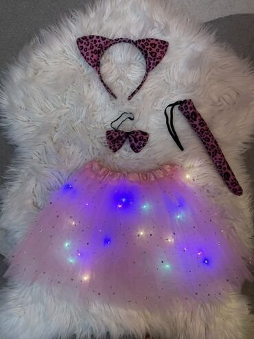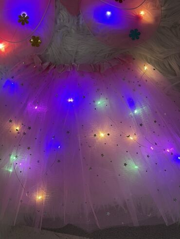 - Pufnasta roze tutu suknja od tila sa sitnim zvezdicama i mesecima, ukrašena ugrađenim višebojnim LED lampicama (diskretna žica; uključivanje/isključivanje na baterijski prekidač)