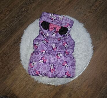 UpotrebljenоDečiji prsluk sa kapuljačom,vek.92/98 ljubičaste boje, sa printom Minnie motiva. Model je punjen i prošiven, zatvara se rajsferšlusom napred. Kapuljača ima 3D detalje (uši i mašnu) za dodatni šarm. Struk je blago naboran radi boljeg pristajanja. Idealno za prelazne dane i slojevito oblačenje.