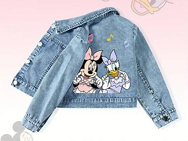 Dečja teksas jakna sa printom crtanih likova na leđima.