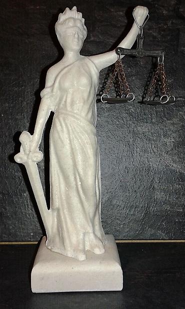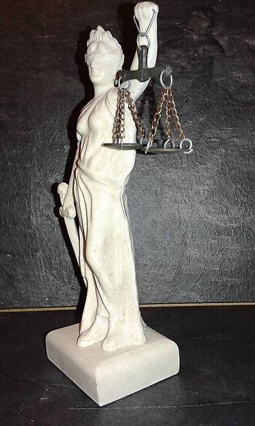 Dekorativna figura Justicije (boginja pravde) na zlatnom postolju ili crnom postolju ili devicanski bela ( ima ta tri modela)
