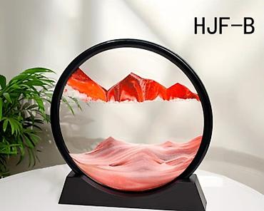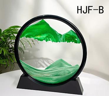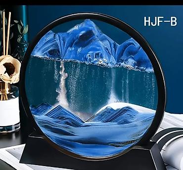 - Dinamična umetnička dekoracija sa finim obojenim peskom u vodi/ulju koja pri svakom okretu stvara jedinstvene pejzaže: dine, planine, doline i „vodopade”.