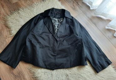 Ženski sako, vel. xl(merim dimenzije), 100% poliamid(imitacija prevrnute kože), samo probana, veoma lepog dizajna. Sezona proleće - jesen .Sive boje.