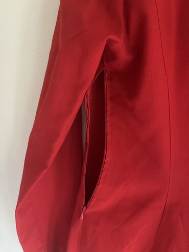 Elegantna večernja haljina u intenzivno crvenoj boji. Model je dugačak, sa visokim šlicem sa jedne strane u vel S/M jednom obucena za ozbinjo zaintetesovane saljem snimak800 RSD
