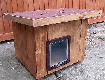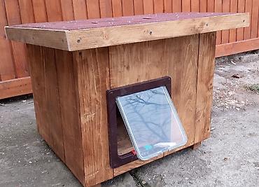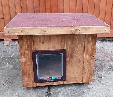 Drvena kućica za mačke/mini pse sa klapnom - Materijal: masivno drvo