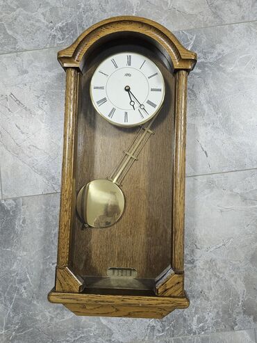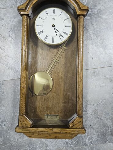 - Klasični zidni sat sa klatnom, stilizovan u tradicionalnom dizajnu.