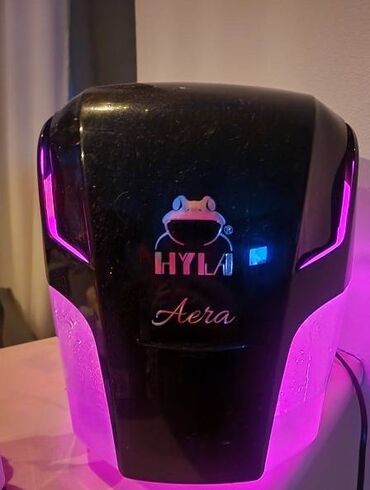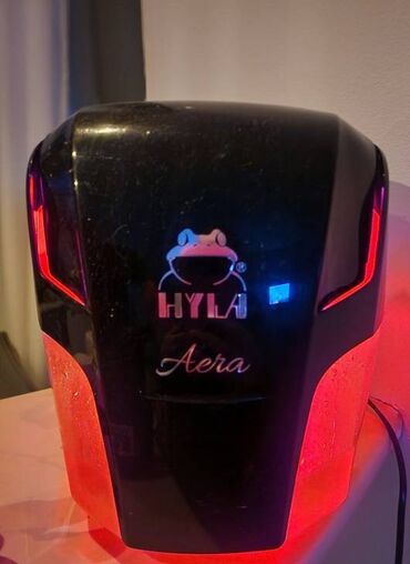 Dva puta korišćen HYLA aparat za prečišćavanje vazduha sa efektom prskanja vode. Neutrališe loše mirise spolja i uklanja zagađivače vazduha. Poseduje dva komandna sistema. Ne zavisi od filtera koje konstantno morate menjati, već sve što usisa iz vazduha od čestica prašine , alergena buđi, zadržava se u vodi. Ujedno leti čineći vazduh čistijim prijatno hladi i 5 stepeni smanjuje temperaturu. Ako instalirate njihovu aplikaciju možete na telefonu da podešavate nijasne i boje koje će da se menjaju, ili da bude jedna nijansa ili da isključite. Stoga je zanimljiva deci kao senzorna lampa. Radi na vodu i mogu se dodati esencijalne uljane kapi koje dobijate na poklon, miris narandže i eukaliptusa. Kompaktna je i laka za poneti kada idete negde na više dana. Nov je oko 40 hiljada dinara.