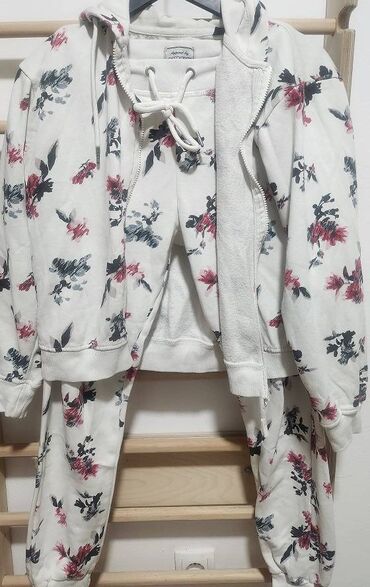 Komplet trenerka, EsMara, M veličine, gornji deo na raskopčavanje, sa kapuljačom; fenomenalan pamuk, bela sa cvetnim po sebi, jako prijatna za nošenje. Nošena, ali očuvana.