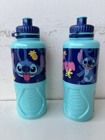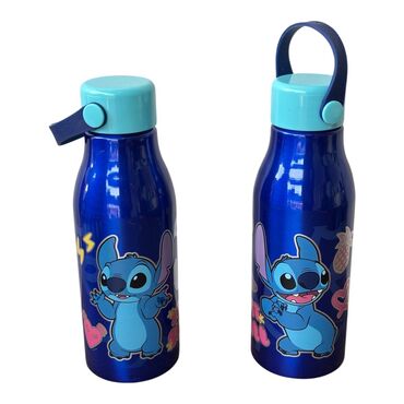 Plava aluminijumska flašica sa motivima iz crtanog filma Lilo i Stič. Boca ima plavi plastični čep sa poklopcem koji se lako otvara i zatvara. Praktična za nošenje vode ili drugih napitaka za decu i odrasle.