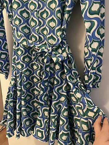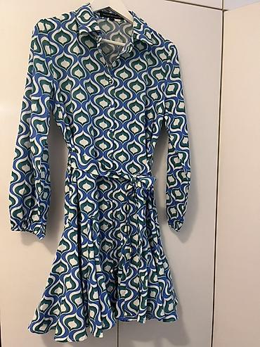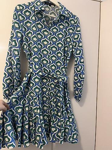 - Šara: geometrijski retro print u plavim, zelenim i belim tonovima