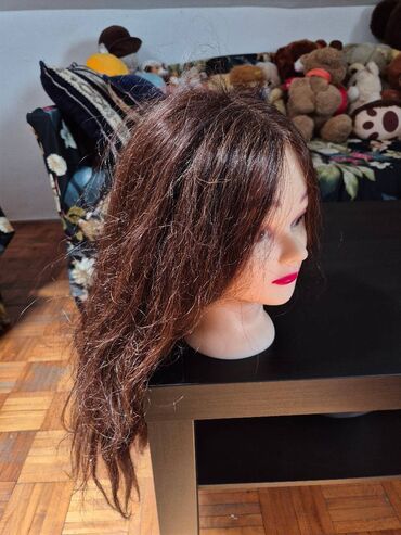 - Realistična trenerska glava sa dugom smeđom kosom.