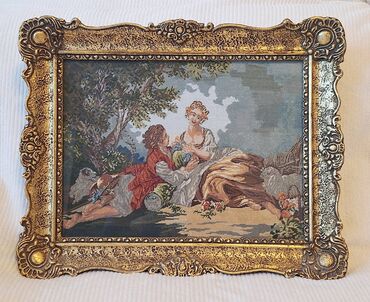 Prodajem original Vilerov goblen "Pastirska idila" (kataloški broj 2356), sitan vez, sa antik ramom, star 50 godina. Dobro očuvan bez vidljivih oštećenja. Papir na poleđini je požuteo i ispucao od starosti. Dimenzije sa ramom su 51*41 cm. Cena 400 evra ili 47.000 dinara.