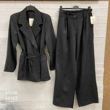 Komplet ženske pletene odeće – svetloružičasti - Dvoddelni set: top i pantalone. - Top: preklopni kroj sa spuštenim ramenima, dugi rukavi, fino rebrasto pletivo, struk naglašen elastičnim pojasom....