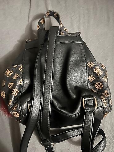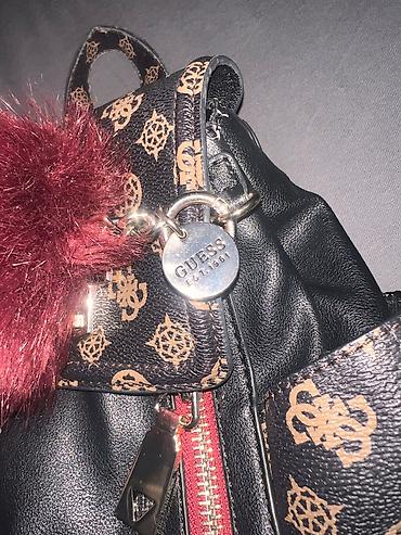 - Detalji: zlatni metalni elementi, crveni detalji na rajsferšlusima, četkica/privjesak od bordo krzna, GUESS metalni privjesak