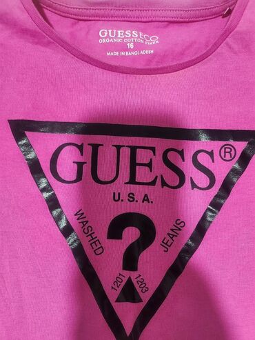 Guess majica, pink boje, pamuk, eslastin, NOVA, veli;ina 16 ili XS. Jednom obucena. Veoma prijatna za nošenje, kupljena u Fashionu.