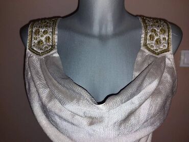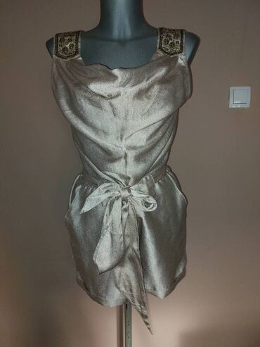 kratki, svečani h&m kombinezon, sedefne bež boje, sa ukrasima boje starog zlata.