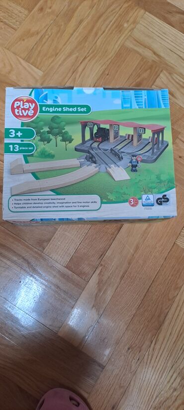 Lokomotiva sa šinama i delovima i garaža za vozic. Novo samo otvorena kutija kupljeno detetu za Novu godinu. Samo se otvorilo videlo i zatvorilo. Manji set koštao 2990, a veći 4990. Kupljeno u Lidlu. Sve je kao sa slike.