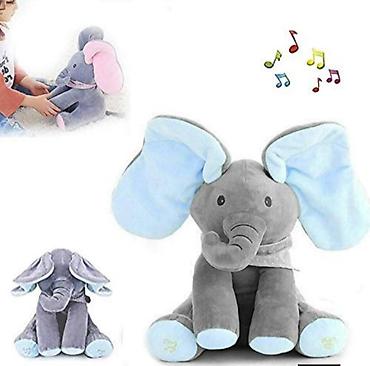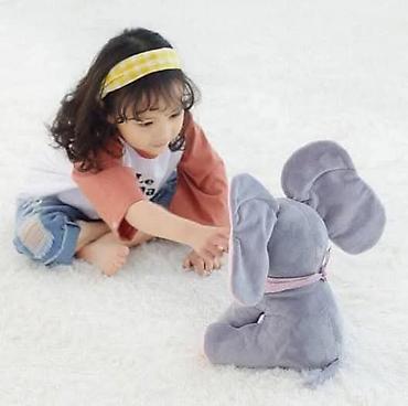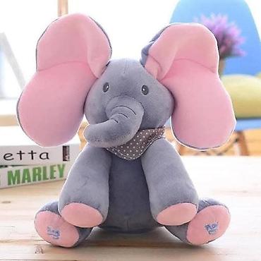 Plišani slonić sa muzikom i interaktivnim ušima - Mekan pliš u sivoj