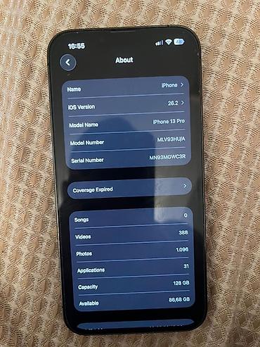 Apple iPhone 13 Pro – 128 GB, grafit - Model: iPhone 13 Pro (model number MLV93HU/A) - iOS: verzija 16.2 (prikazano u podešavanjima) - Kapacitet skladišta: 128 GB (slobodno 86,68 GB u trenutku sni...