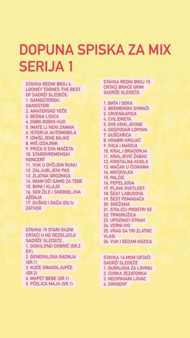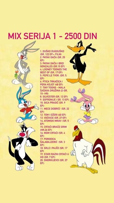Mix Serija 1 – komplet crtanih filmova na srpskom (nekolicina na hrvatskom sve piše) jeziku cena za sve crtaće 2500 din