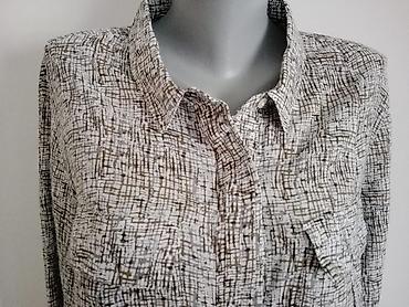 Viskozna košuljica, veličina L. Karirani dezen u kombinaciji teget, oker i bele boje. Model je duži, sa kragnom i dugmićima celom dužinom napred. Rukavi 3/4 sa mogućnošću blagog podvrtanja. Jedan n...