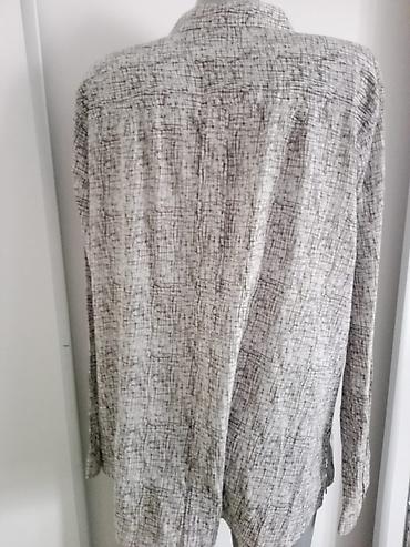 Košulja, veličina L - Dužina: 68 cm - Širina pazuh–pazuh: 55 cm - Model: duga košulja ravnog kroja sa dugmadima sprijeda i klasičnim kragnom - Rukavi: dugi, sa dugmetom na manžetnama - Dizajn: asi...