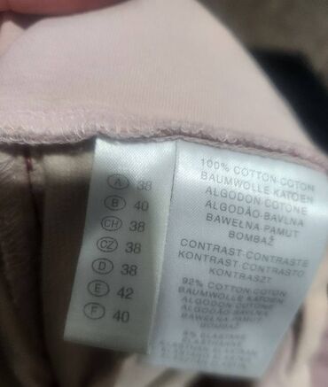 PamukBebi roza trudničke pantalone, sa gumom u struku , a same pantalone su od pamučnog somota i elastina. Nošene očuvane, broj 42.