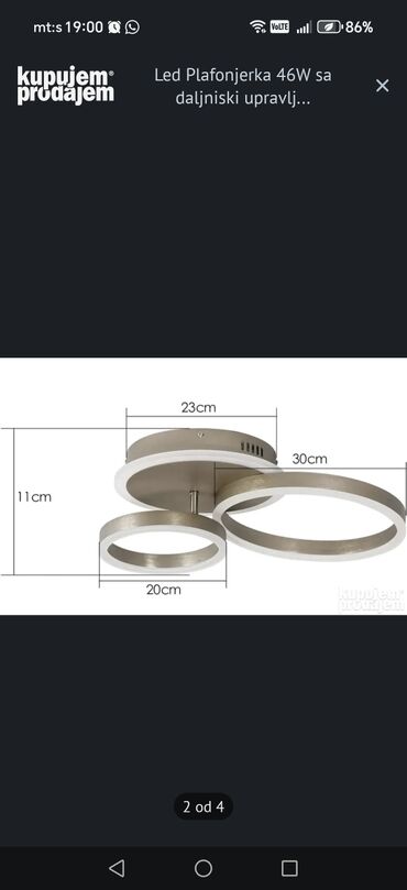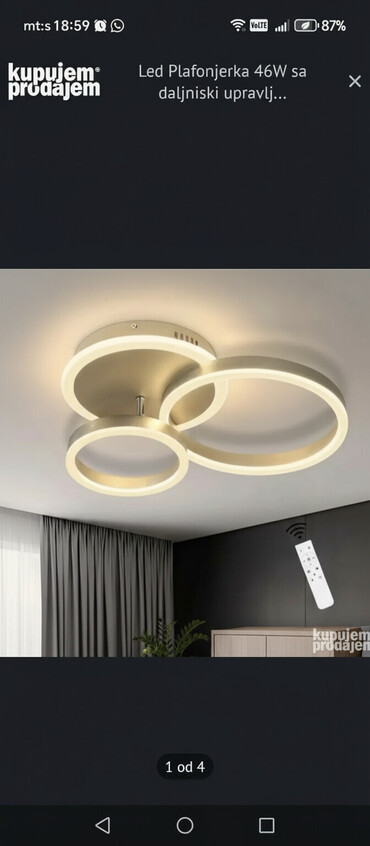 - Dizajn: moderan troprstenasti plafonski LED panel (tri kružna segmenta).