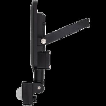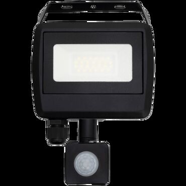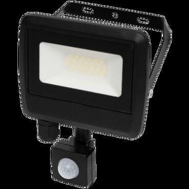 LED Reflector with motion detector, 20 W, 1600 lm, IP65. Features: black color, wall mountable, SMD LED light source, 4000K color temperature. PIR motion sensor with 140° detection angle and adjustable detection distance of approximately 2-8 meters.