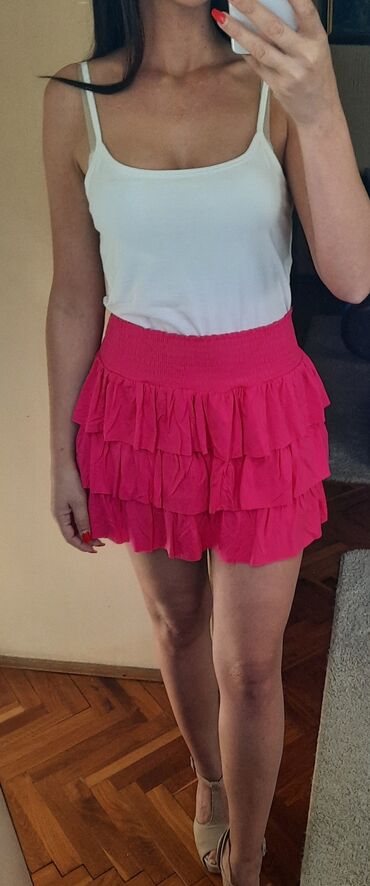 Nova, fenomenalna suknja, crna, sa etiketom, imitacija koze napred, a pozadi materijal sa elastinom koji se tegli. Vel M( mogu da merim) Fenomenalna je!