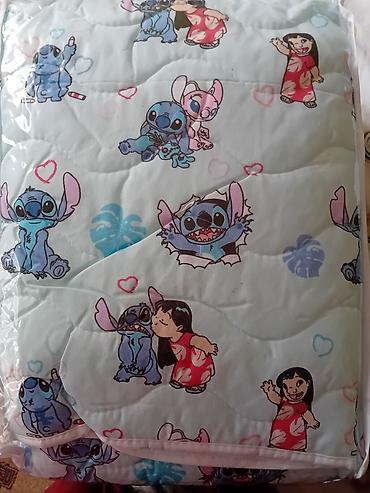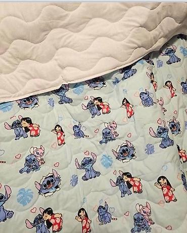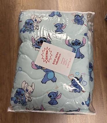 - Dizajn: obostrani dečiji print sa likovima Lilo, Stitch i Angel u raznim pozama; dostupne svetlije i tamnije plave varijante sa srcima, zvezdicama i tropskim motivima
