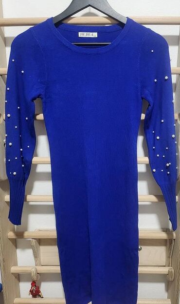 SNIŽENJE-NOVA Haljina prelepa i premekana, od vune, kašmira, akrila i elastina. Na rukavima biseri, Uskog kroja , ali nije kruta već veoma rastegljiva. Dužina midi, veličina piše L ali je više M.Royal plava boja.Nenošena.