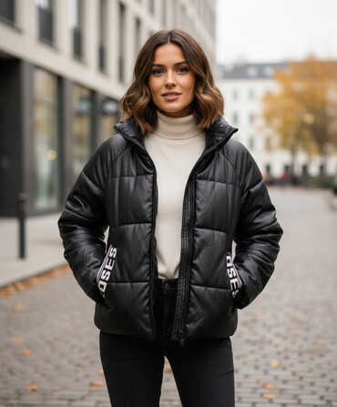Zimska ženska jakna/kaput sa kapuljačom i veštačkim krznom. Detalji: - Duži kroj (ispod kukova), pruža dobru zaštitu od hladnoće i vetra - Topla, prošivena punjenjem; dekorativni štep uz geometrij...