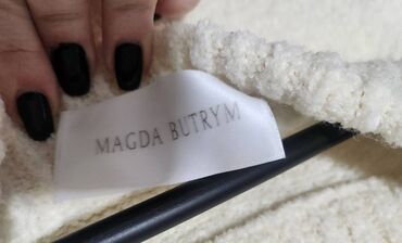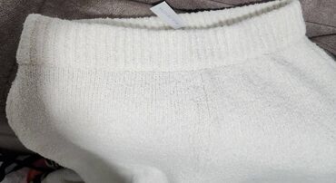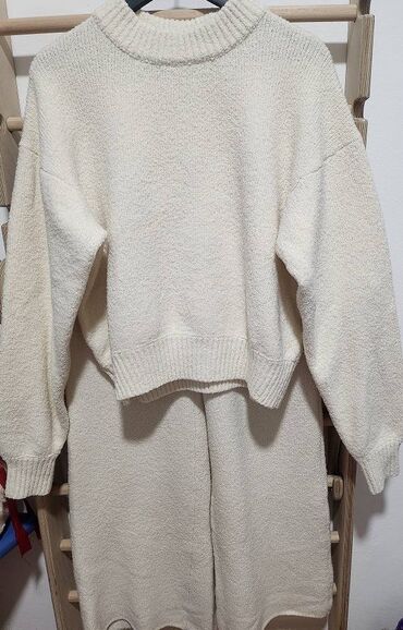 JednobojniNOVO-Krem komplet, predivan i premekan, od Magde Bytrim, M veličine, pre nekoliko dana dobijen iz Italije, ali mi je veliko. Materijal merino vuna, kašmir, poliamid i lan. Pantalone s aširokom i jakom gumom u struku, ravno padajućih nogavica, a gornji deo do kukova.