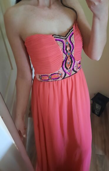 Potpuno nova letnja haljina, sa etiketom, divna, prelepa viskoza, kombinovana sa cipkom. Pozadi na pojasu jaca guma, te je moguce podesavati struk. Vel M. Haljina je na slici sa cenom koliko je kos...