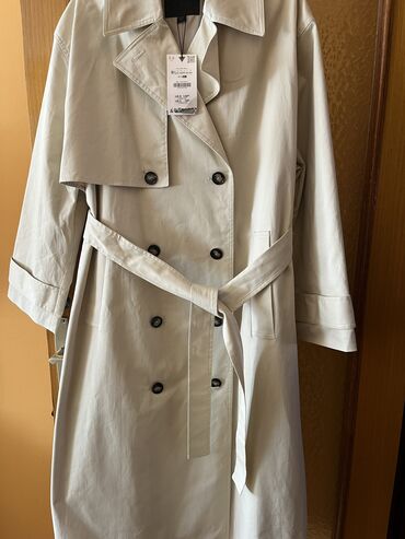 Elegantni ženski kaput/trenč u bež boji Univerzalne velicine Dostupan i u crnoj boji. - Dužina do članaka, klasična A-linija - Dvoredno kopčanje sa tamnim dugmadima - Široke rever kragne i preklo...