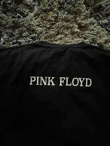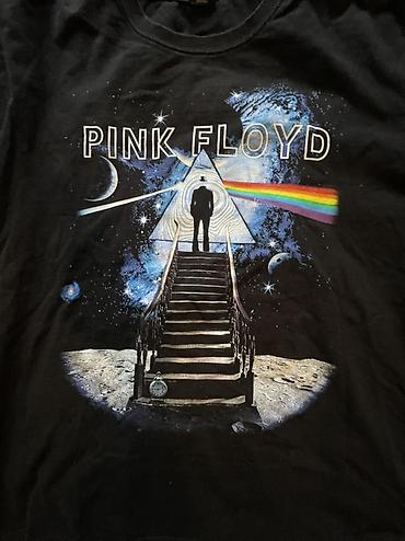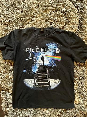 Majica Pink Floyd – crna, kratkih rukava, okrugli izrez. Prednja strana sa velikim grafičkim printom: natpis “PINK FLOYD”, prizma sa spektrom u boji, svemirski motivi i stepenište.