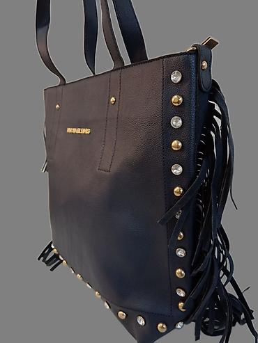 Elegantna i istovremeno efektna torba koja spaja praktičnost dnevne šopper forme sa rokerskim detaljima resa i nitni. Odlična za posao, grad i put. potpuno nova