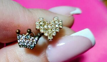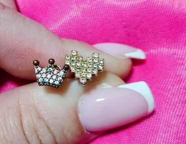 Minđuše na šrafMinđuše su kupljene na komad, kruna i srce srebro, roze gold, sa cirkonima. Kačenje na šraf. Veoma lepo i efektno deluju na ušima, pogotovo ako imate više izbušenih rupa na jednom uhu. Ne mogu ih lepo uslikati pa se ne vidi koliko lepo deluju.