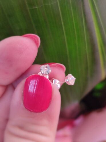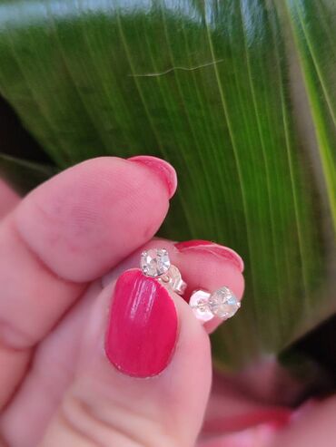 Srebrne minđuše – polu-karike sa cirkonima Od nerđajućeg Hiruškog Čelika - Dizajn: elegantne polu-karike sa ravnim prednjim profilom. - Ukras: po tri sjajna bezbojna cirkona na svakoj minđuši, pos...