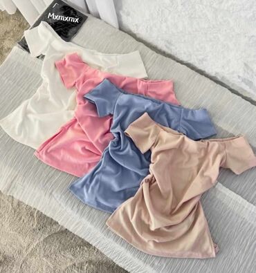 PoliesterRoza mini haljina sa spuštenim ramenima i kratkim rukavima. Haljina ima elastični gornji deo koji omogućava nošenje spuštenih ramena, a bočno je blago nabrana, što doprinosi njenom modernom izgledu. Dostupna je u više boja, pogodna za razne prilike.