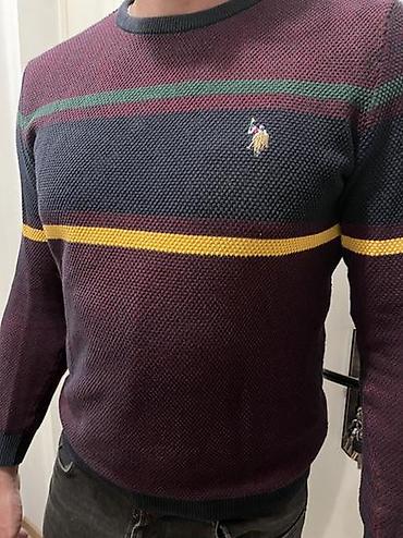 Muški pleteni džemper sa prugama L - Model: okrugli izrez, dugi